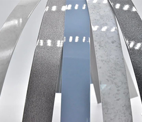 PVC封邊條:主要成分為聚氯乙烯,經混煉、壓延、真空吸塑等工藝而成的。產品普遍應用於家具、辦公、廚具、教學設備、民用實驗室等。厚度從0.3至3mm,寬度從12mm至80mm。產品有以下主要特點:表麵平滑、無起泡、無拉紋、光澤度適中、表麵和背麵平整、厚度均勻、寬度一致、硬度合理、彈性高、質量好、耐磨性強、修邊後封邊側麵顏色與表麵顏色接近、不發白、光澤度好、家具成品整體色協調。